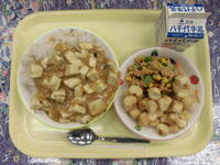 麦ごはん・五目四川豆腐・中華和え・ももゼリー・牛乳