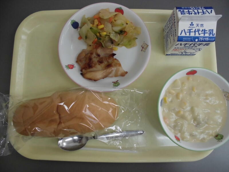 ・コッペパン ・鶏のマーマレード焼き ・こんにゃくサラダ ・コーンシチュー ・牛乳