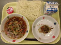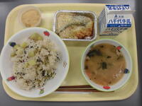 ごはん・鶏肉の香味焼き・じゃこサラダ・根菜汁・牛乳