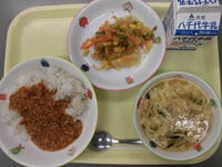 ナポリタン・ハムコーンサラダ・市川市産梨のパイ(新高)・牛乳