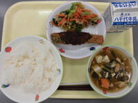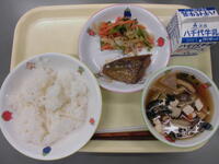 ごはん・鯖の味噌煮・ごま和え・けんちん汁・牛乳