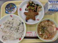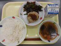 ごはん・豆・豆ハンバーグ・五目きんぴら・すまし汁・牛乳