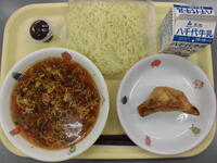 冷やし中華・手作り揚げ餃子・ひとくちぶどうゼリー・牛乳