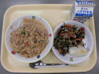 チキンライス・ドリアソース・海藻サラダ・梨(豊水)・牛乳