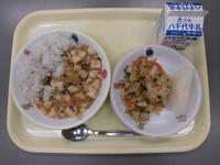 麦ごはん・五目四川豆腐・ひじきサラダ・ソイバニラアイス・牛乳