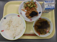 ごはん・鯖の竜田揚げ・ごま酢和え・豚汁・バレンシアオレンジ・牛乳
