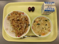 麦ごはん・焼き肉丼(具)・中華風コーンスープ・パインゼリー・牛乳