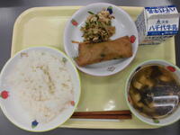 ごはん・鮭フライ・おかか和え・けんちん汁・牛乳