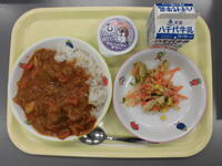 麦ごはん・夏野菜カレー・海藻サラダ・フルーツヨーグルト和え・牛乳