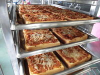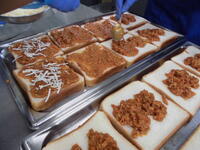 パンに手作りのカレーソースとチーズをのせてオーブンで焼き上げます。