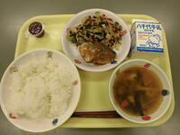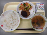 ごはん・キャベツメンチ・からし和え・すまし汁・牛乳