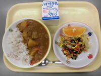 麦ごはん・ポークカレー・海藻サラダ・清見オレンジ・牛乳