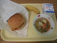 フィッシュバーガー・春野菜のポトフ・バナナ・牛乳