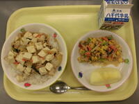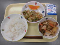 麦ごはん・五目四川豆腐・切り干し大根の胡麻和え・りんご・牛乳