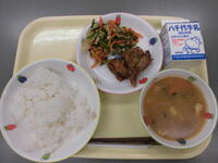ごはん・鶏肉のお茶フライ・ごま和え・豚汁・牛乳