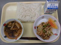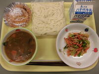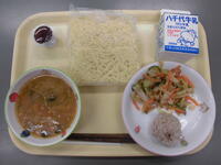カレーうどん・千草和え・ぐりとぐらのカステラ・牛乳