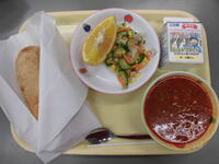 ごはん・鯖のカレー焼き・ツナサラダ・湯葉入りかきたま汁・ひとくちアセロラゼリー・牛乳