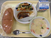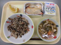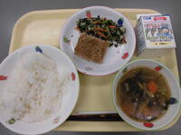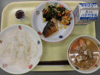 ごはん・松風焼き・塩こうじ磯和え・のっぺい汁・牛乳