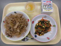 麦ごはん・豚丼(具)・わかめサラダ・フルーツゼリー・牛乳