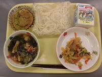 わかめうどん・こんにゃくサラダ・わかもちくんマフィン・牛乳