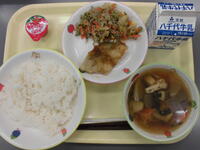 ごはん・いかのかりん揚げ・おかか和え・根菜汁・牛乳