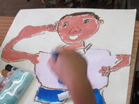 1年生は、今、絵の具を使って運動会の絵を描いています。
