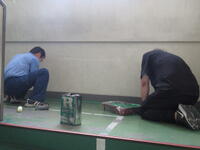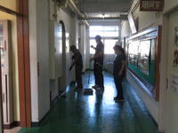 7月27日、28日にかけて、他の学校の用務員の皆さんにも手伝ってもらい、廊下の塗り直しをしています。