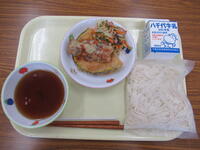 冷麦・天ぷら(ちくわ・かぼちゃ)・たこサラダ・牛乳