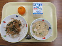 ごはん・プルコギ丼(具)・たまごスープ・冷凍みかん・牛乳