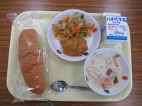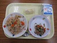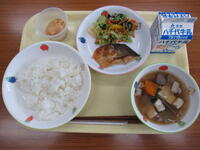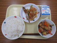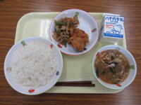 ごはん・鶏の竜田揚げ・五目きんぴら・秋の味噌汁・牛乳