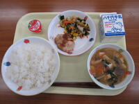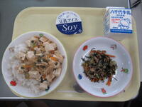 ごはん・五目四川豆腐・ひじきサラダ・ソイアイス・牛乳