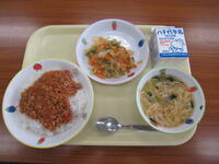 ごはん・タコライス(具)・寒天サラダ・たまごスープ・牛乳