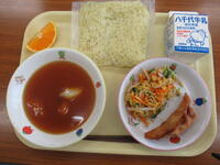 冷やし中華・手作り揚げ餃子・バレンシアオレンジ・牛乳