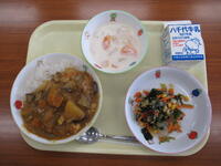 麦ごはん・夏野菜カレー・海藻サラダ・フルーツヨーグルト和え・牛乳