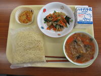 味噌ラーメン・おかか和え・手作りスイートポテト・牛乳