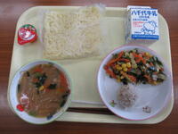 今日は2-1・2-4・3-2・5-3・6-3・杉の子1組・2組のリクエスト給食です。わかもちくんマフィンは、若宮小学校人気№1のメニューです。