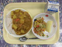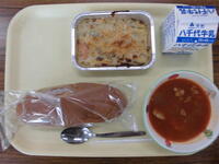 焼きカレーパン・海藻サラダ・ポトフ・ひとくちアセロラゼリー・牛乳