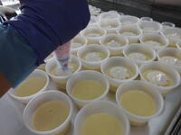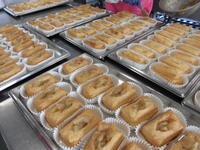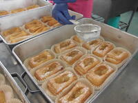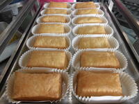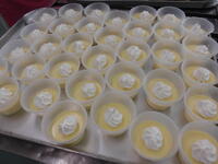パイシートを焼いてコンポートを入れ、粉糖をかけて仕上げます。