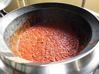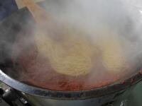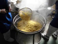ナポリタンはトマトソースを作り、茹でたての麺をからめます。