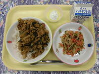 麦ごはん・プルコギ丼・かみかみサラダ・さつまいもプリン・牛乳