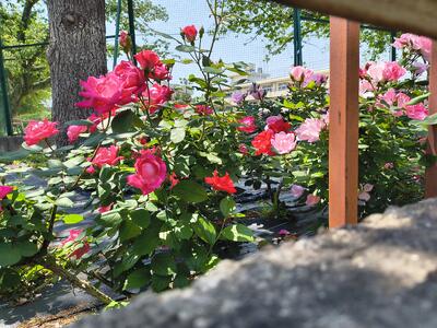 若宮小ではバラの花がとても綺麗に見頃を迎えています。