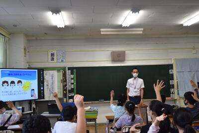 市川市少年センターから2名の先生をお招きし、5・6年生に「インターネットと正しく・安全につきあおう」と題して出張授業を行っていただきました。