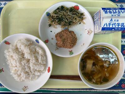 献立:ごはん・さんがやき(千葉県郷土料理)・ほうれん草とじゃこの和え物・さわにわん・牛乳
