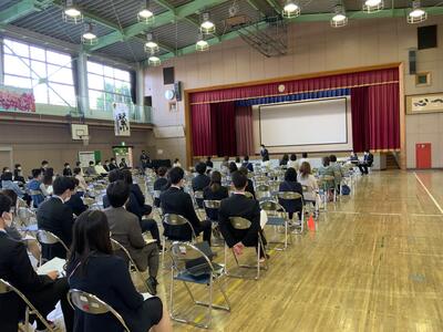 ☆入学式は、新型コロナ感染防止対策のため、時間を短縮し、教室での配付物の説明も、動画配信にかえて行いました。