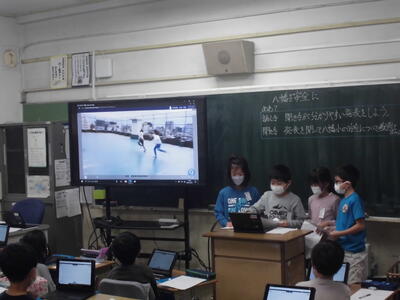3年3組では、八幡小の安全について調べたことをタブレットを使ってまとめ、発表をしました。