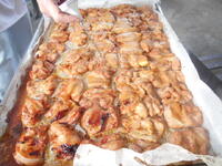 ↓「ハニーマスタードチキン」のとり肉を鉄板に並べています
