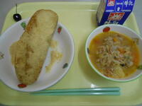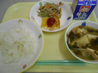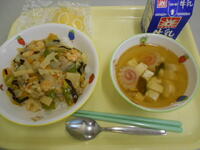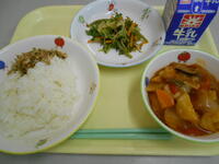 ちくわのからしあえ さつまいもの豚汁 牛乳