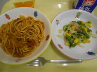 「ほうれん草(のごま和え)がおいしくて全部食べました」「今日も完食しました」「パリパリしたやつ(春巻き)がおいしかったです」といった感想がありました(1年生)。