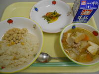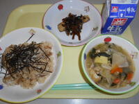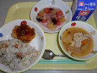 五目ごはん とり肉のから揚げ もやしのごまおかか和え