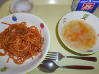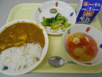 「煮物(肉みそ煮)のおいしそうなにおいがしてきた」「今日はりんごがあってうれしい」「サラダがおいしかったです」といった感想がありました。